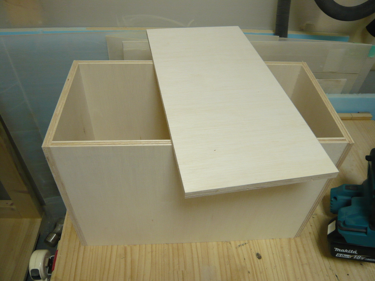 少し隙間が空いているスペースが無駄なので、ここに収納箱を作ります。