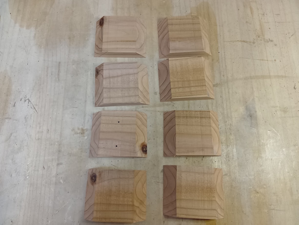 端の角度は45度、板の幅を少し長くして8枚切り出します。