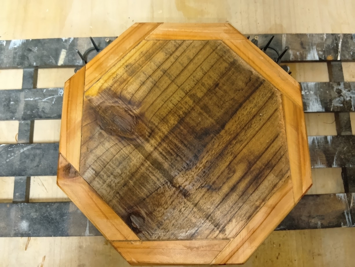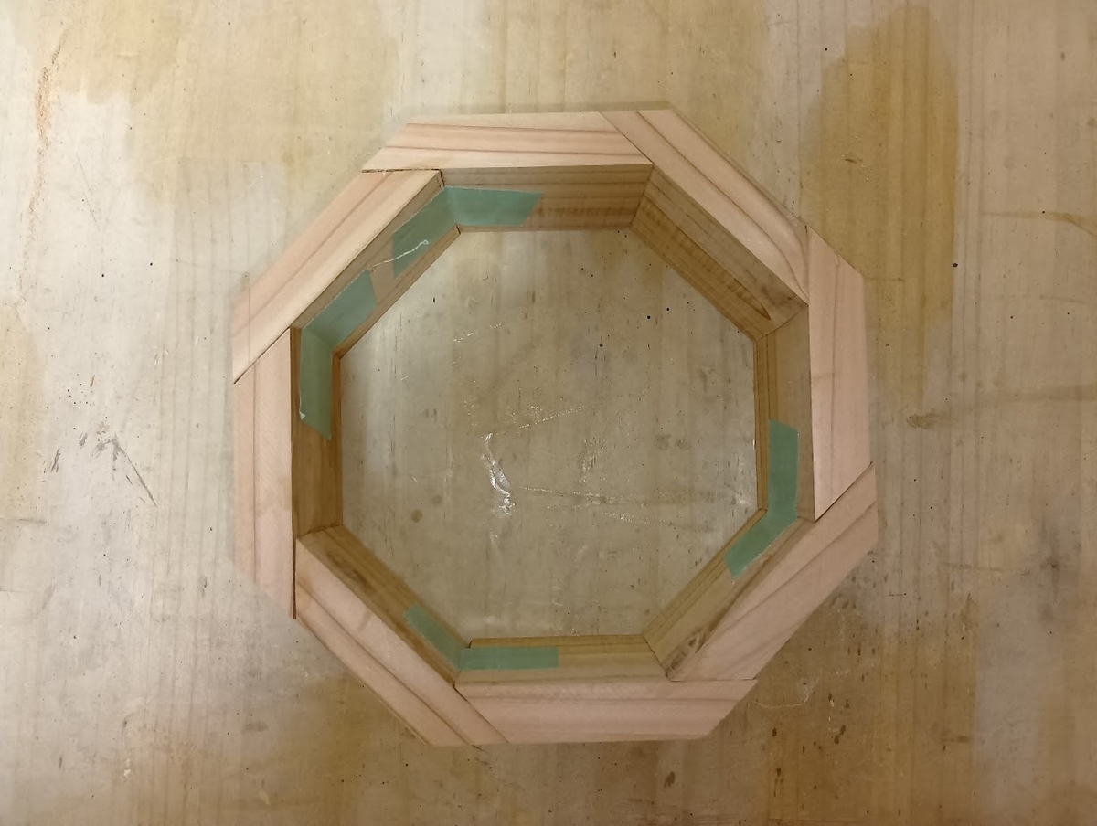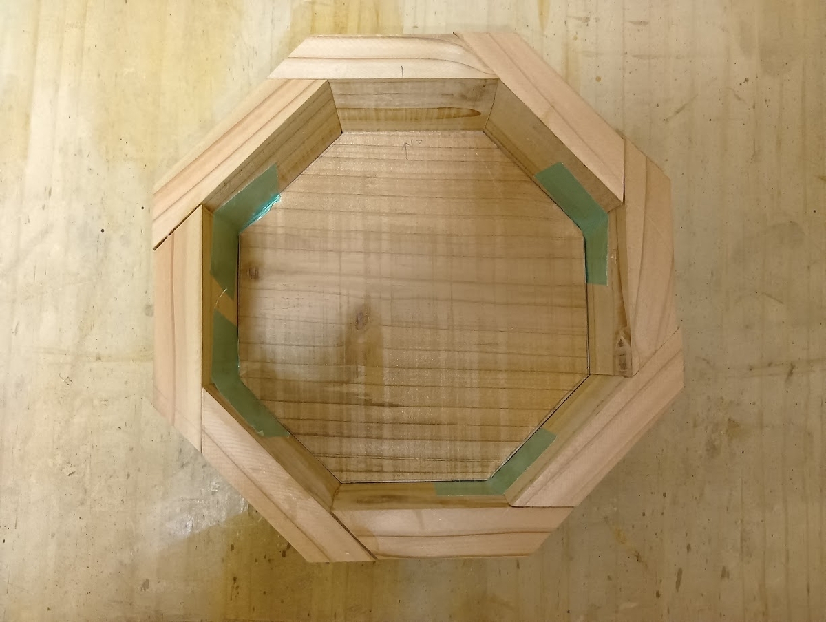 少し大きめの物を探し、怪我に注意して八角形の作製です。