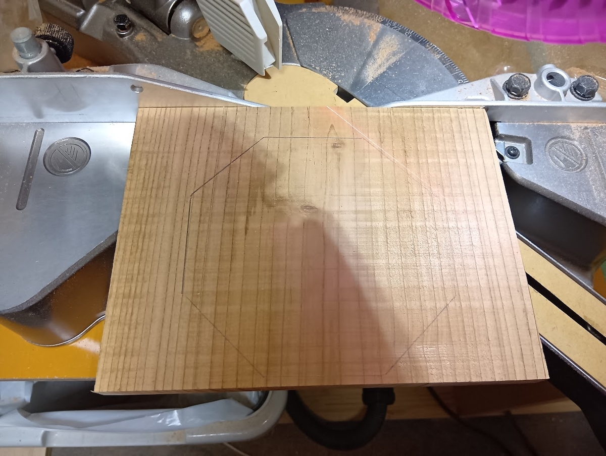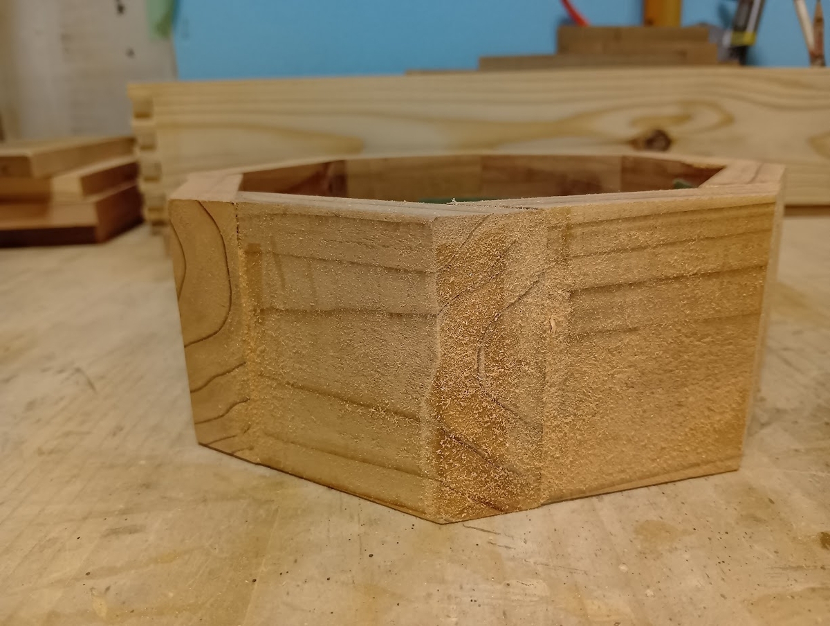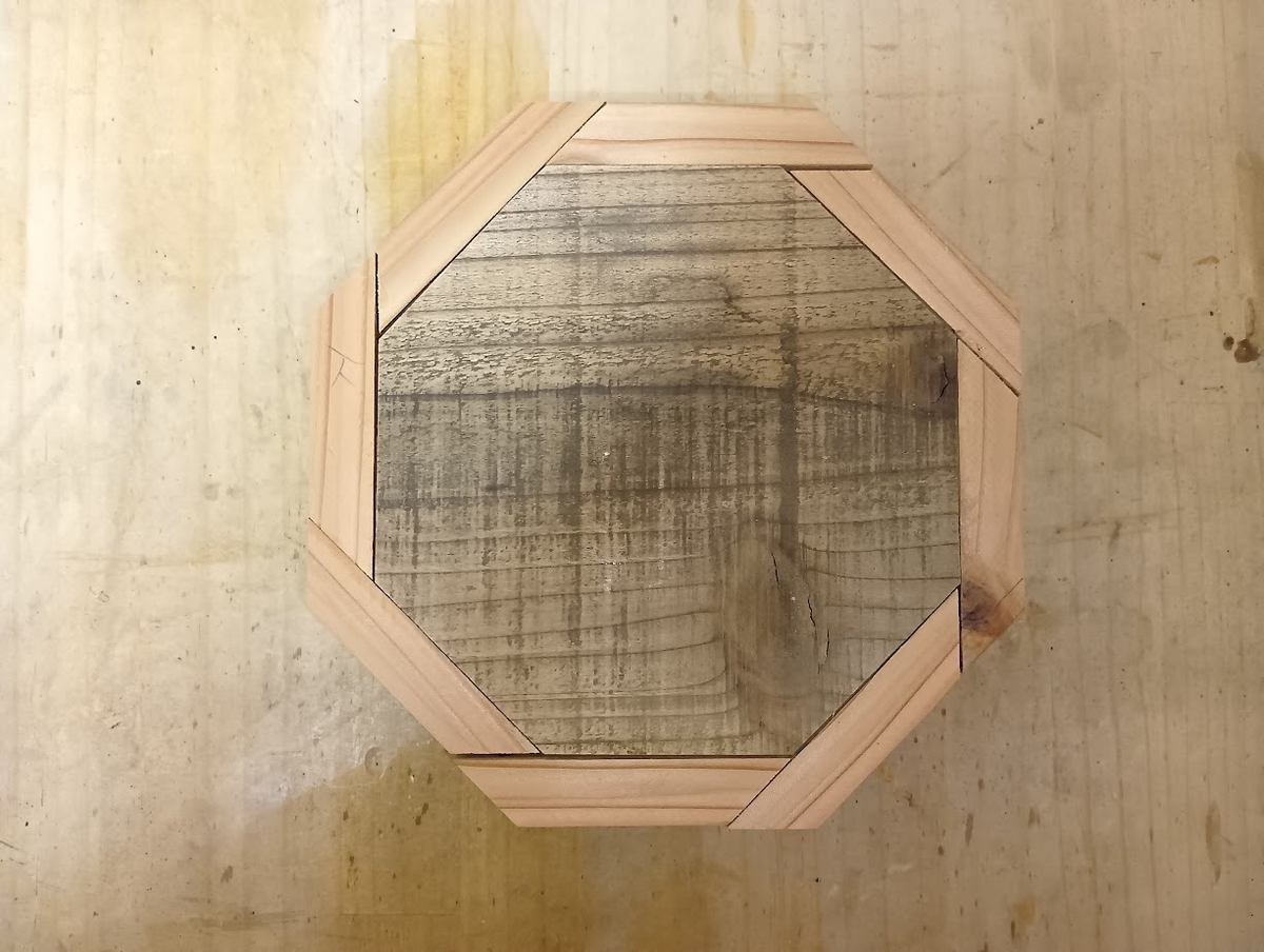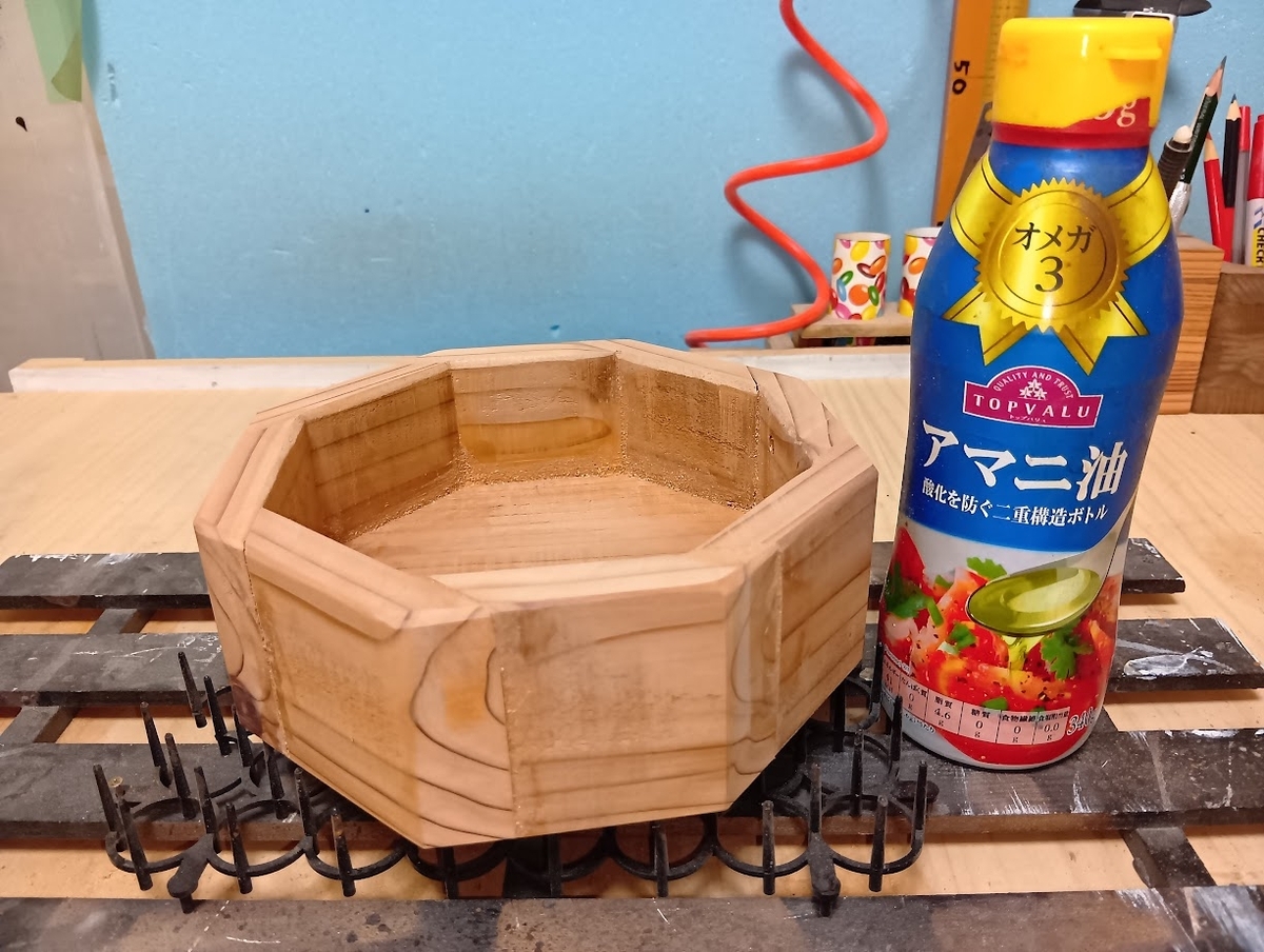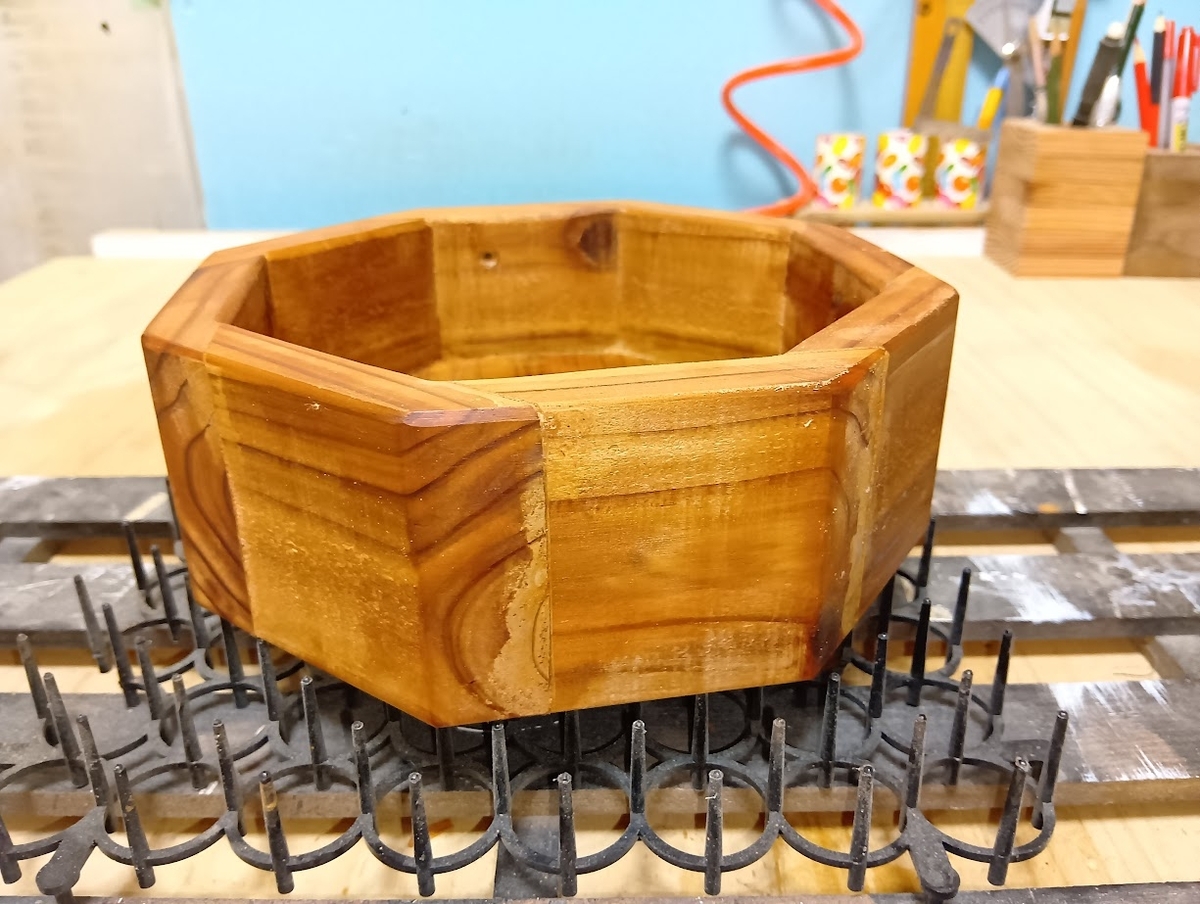 端材都合なので、先ずは前回作製した六角形のペン立ての時に