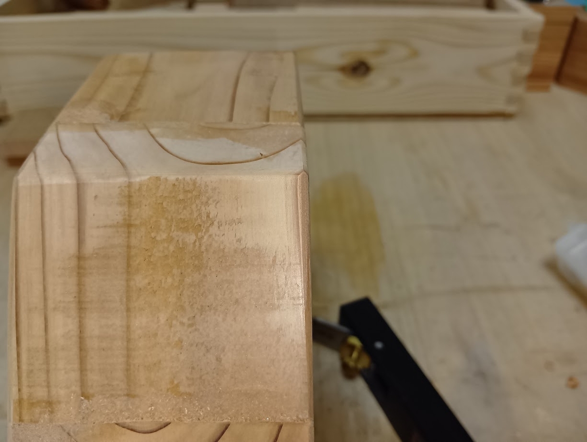 気になる隙間は前回同様、「ボンド+木くず=簡易パテ」で埋めます。